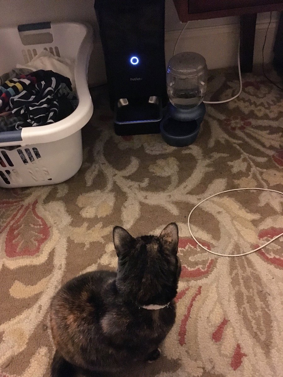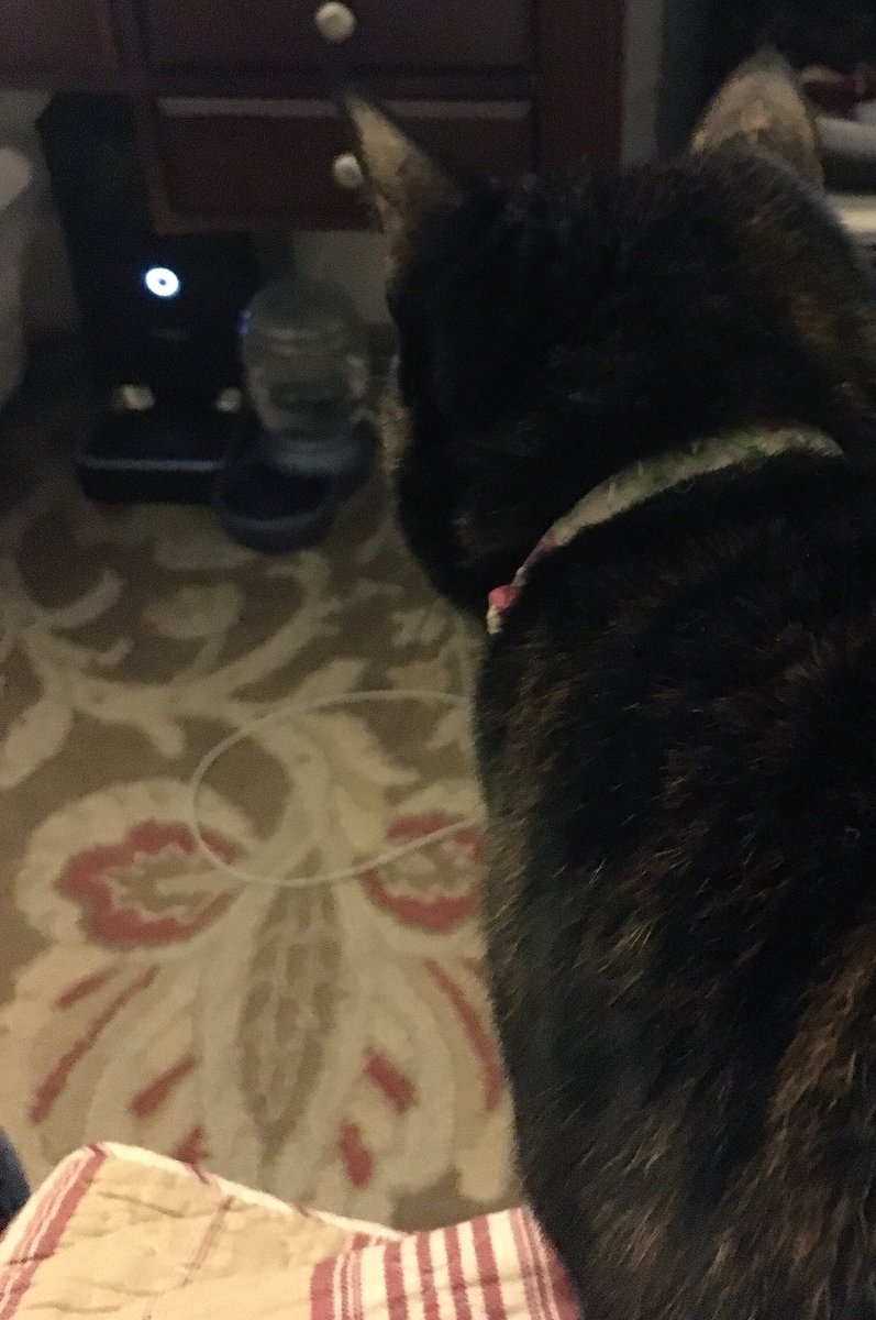 she’ll stare at it from various distances. she loves the feeder so much. i am basically furniture to my cat at this pointpic.twitter.com/PpLLGF0O9w