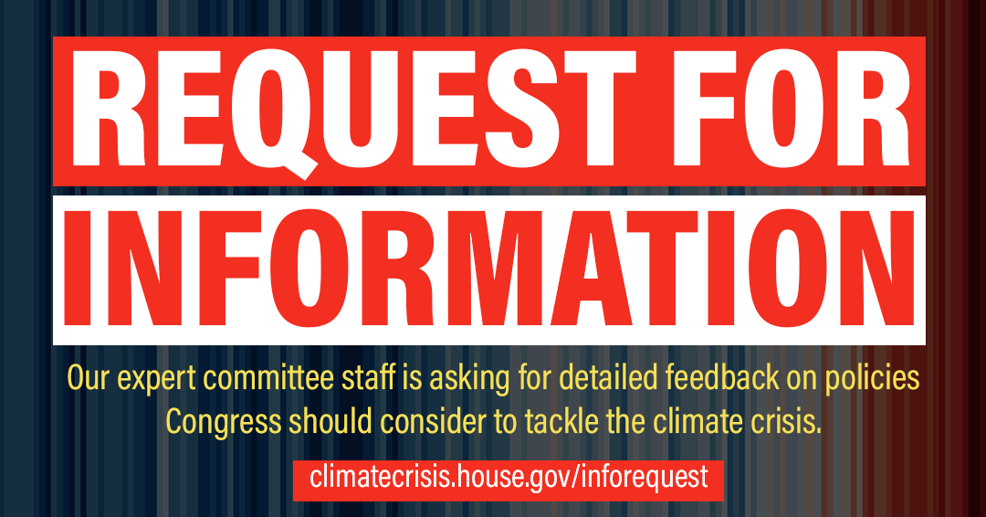 If you didn’t know, our committee is working to develop a roadmap for congressional action on climate, and we need YOUR help! We posted a public request for information. Let us know what you think! Visit http://climatecrisis.house.gov/inforequest for more information. pic.twitter.com/OfJkHySRoT