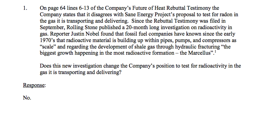 Monitoring radiation levels of the gas that flows into National Grid's system could be accomplished at minimal cost and with low impact at the point of grid entry. One sensor for each entry. Given point-of-entry data, we could extrapolate much of the downstream impact. Do it!