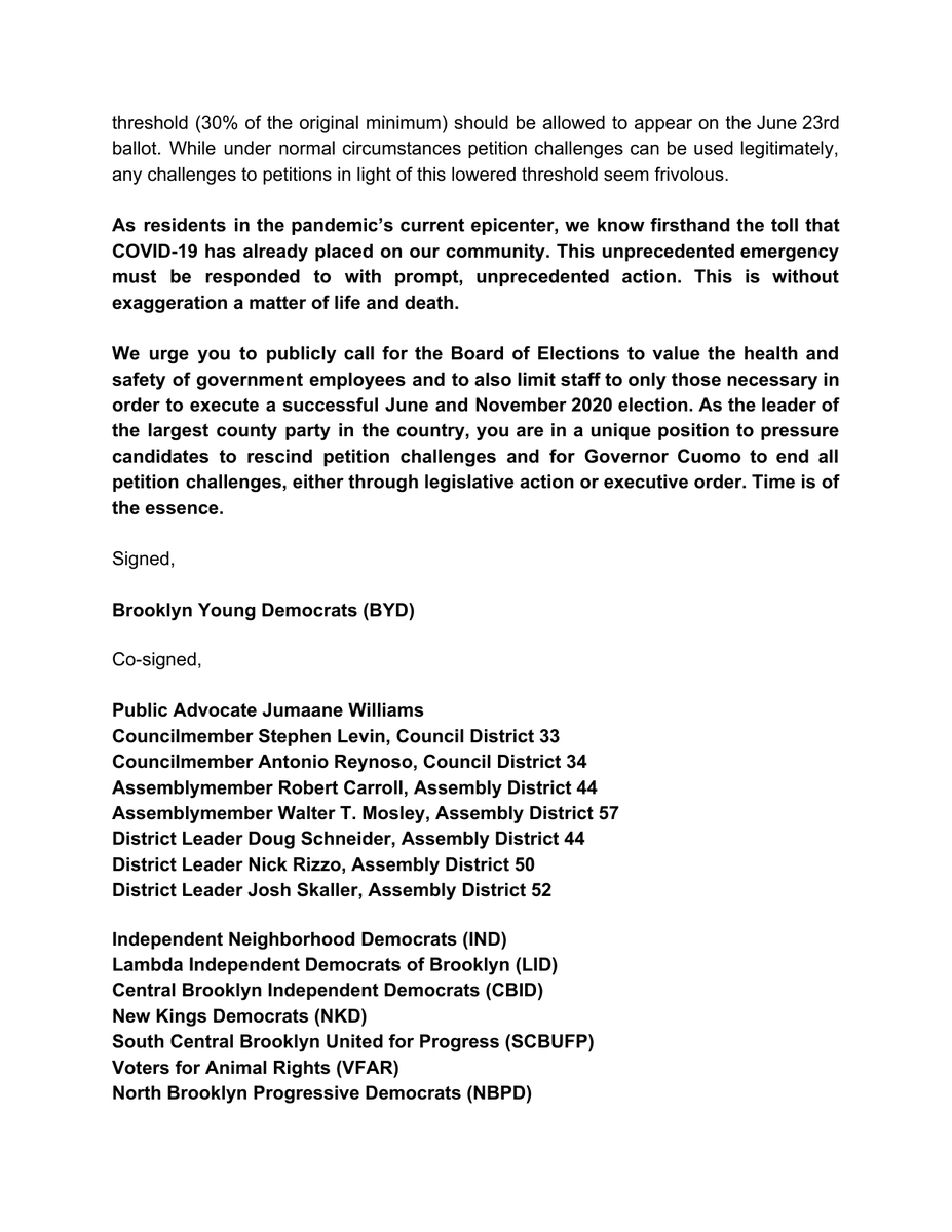 I’m joining the call to suspend petition challenges. We need to prioritize safety over arcane rules. Let’s run clean, open primaries and let the best candidates win.https://twitter.com/BKYoungDems/status/1246516415680651267 …