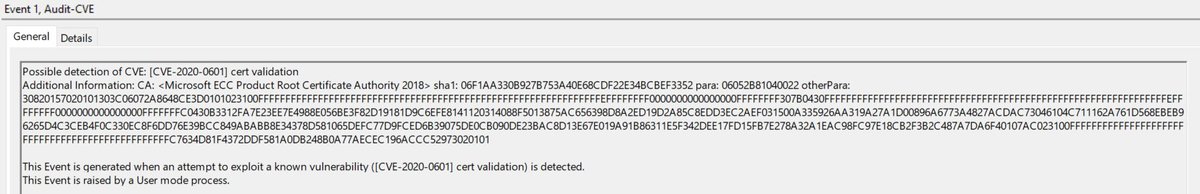 @DidierStevens If you want to do the same thing in PowerShell, here's a short script that will generate the event in Windows Event Log, Application - great for blue teams to test detection: https://pastebin.com/yusYHYHL@sans_isc#cryptoapi#microsoft#BlueTeam https://twitter.com/johullrich/status/1217538002513211392 …pic.twitter.com/5A5AAbKpEL