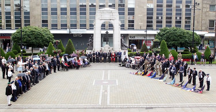 Veterans, serving personnel, Mayor, council & other representatives & the public at this morning's Raising the Armed Forces Flag service.pic.twitter.com/OhI2r6eAq7