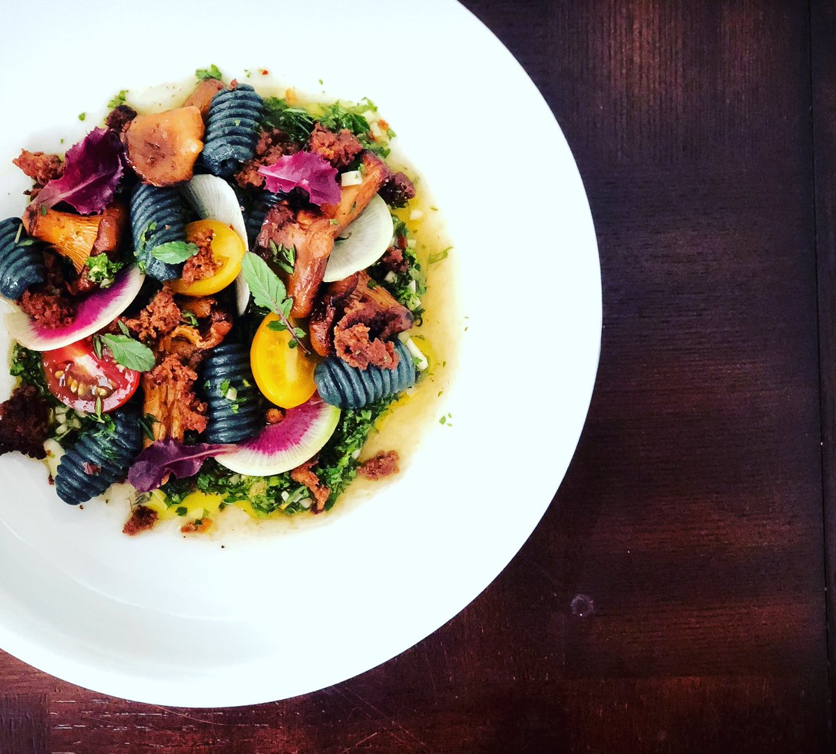 Made a Pasta Salad with Chorizo, Chanterelles, Cherry Tomatoes and Chimichuri.......also had Cojita but to put it in the picture.pic.twitter.com/5xUoh14sBy