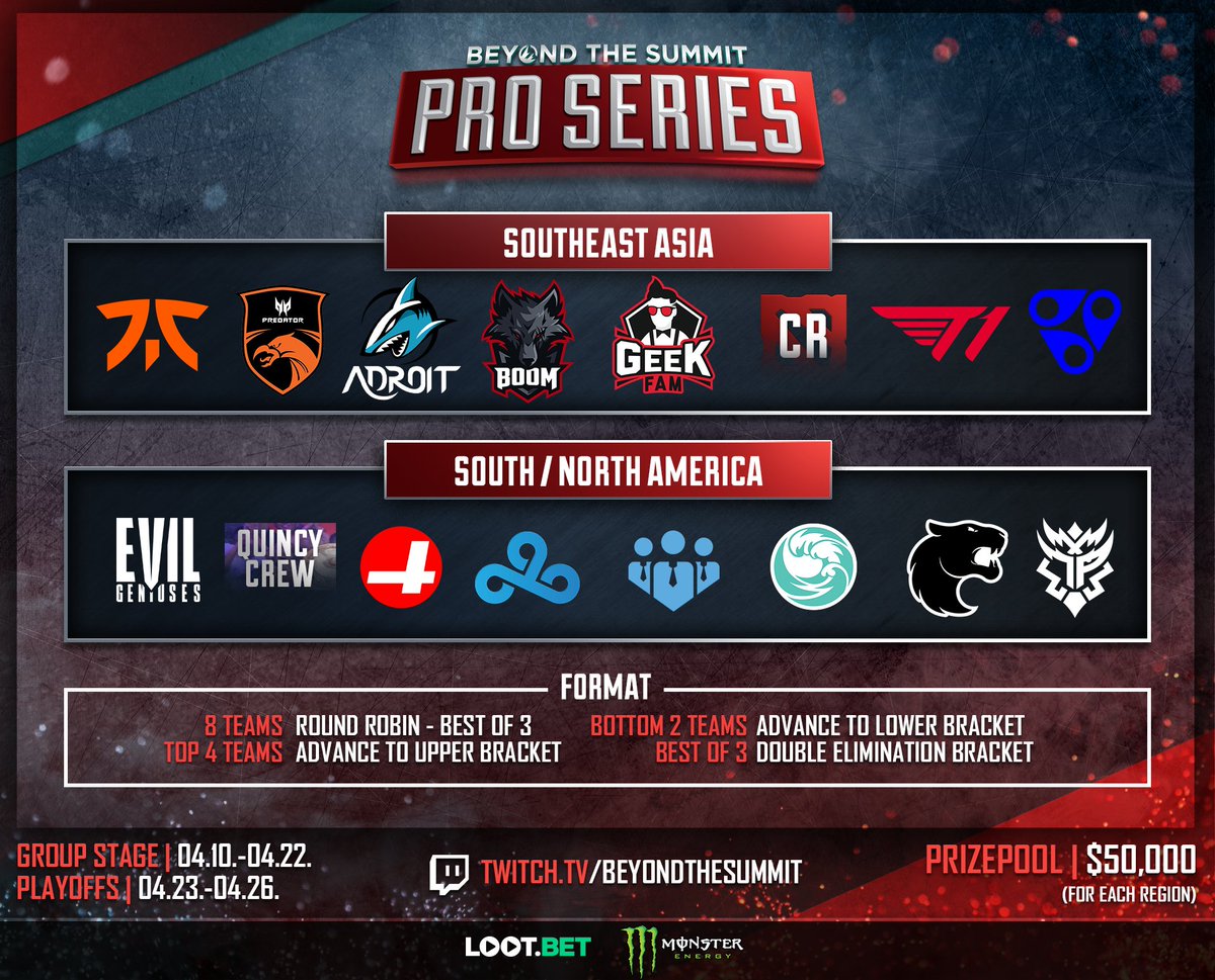 More online Dota events, you say? 👀 Introducing... BTS Pro Series! An online event featuring tournaments for both SEA and America. You can catch all the matches beginning April 10 for both regions on our channel! ✨ 📺 http://twitch.tv/beyondthesummit pic.twitter.com/PErOzWTAk9