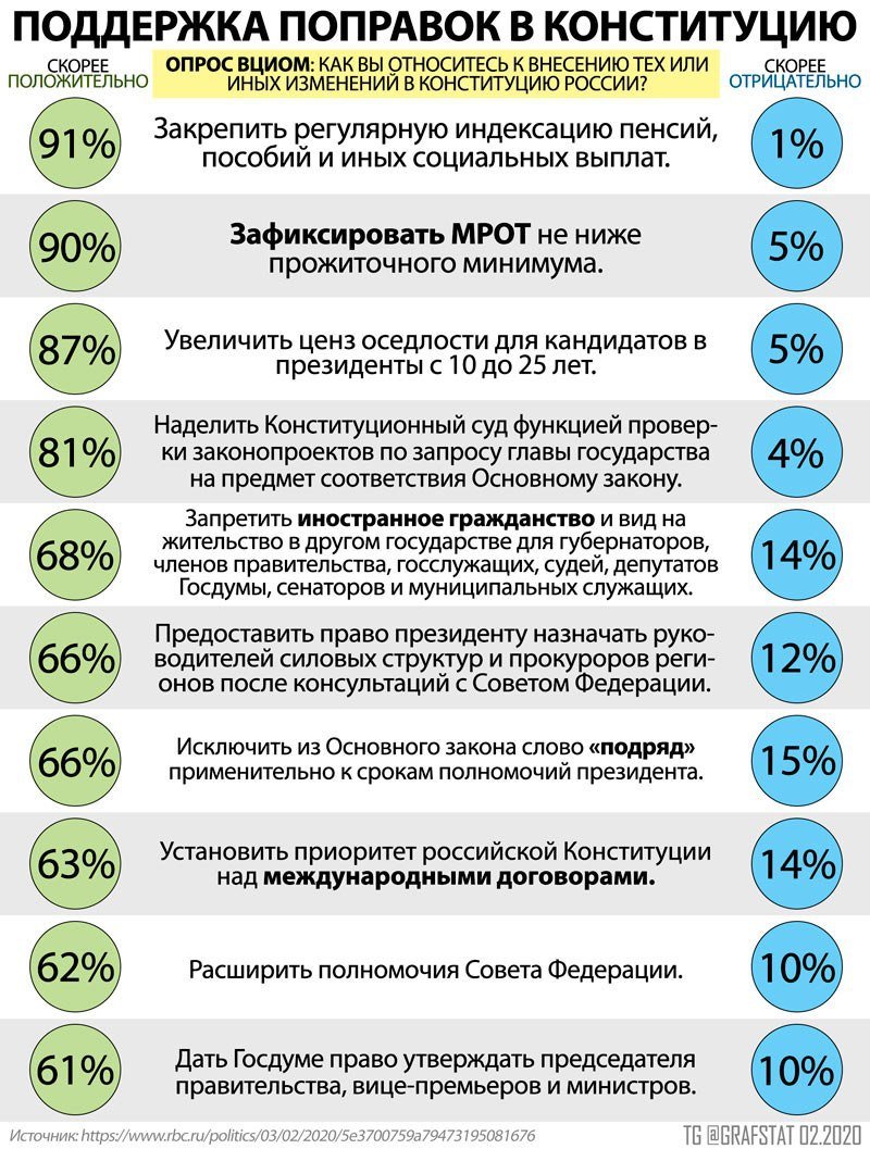 Sondaggio sugli emendamenti alla costituzione russa: mentre le proposte "sociali" godono di un consenso plebiscitario, quella di aumentare i poteri del parlamento ha una opposizione consistente: sostenitori di Putin contrari ad una prospettiva associata alla sua uscita di scena?pic.twitter.com/KvrLNJAE1f
