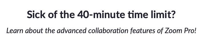 Hej Zoom, bietet in der Pro-Version ein 30-Minuten-Zeitlimit für Meetings an und ich würde dafür bezahlen.pic.twitter.com/RL8JiG6U17