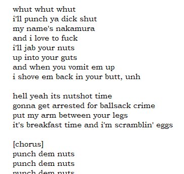 Gonna get arrested for Ballsack Crime. Lol. Tremendous lyricism.