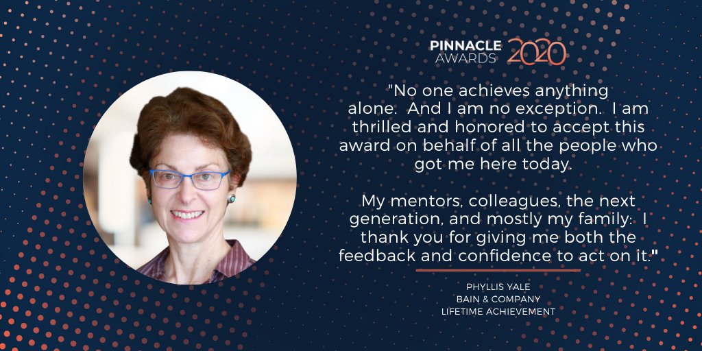 Congratulations once again to our Lifetime Achievement honoree, Phyllis Yale of @BainAlerts!#PinnacleAwards#bosbizwomenpic.twitter.com/TfGDzekSC8