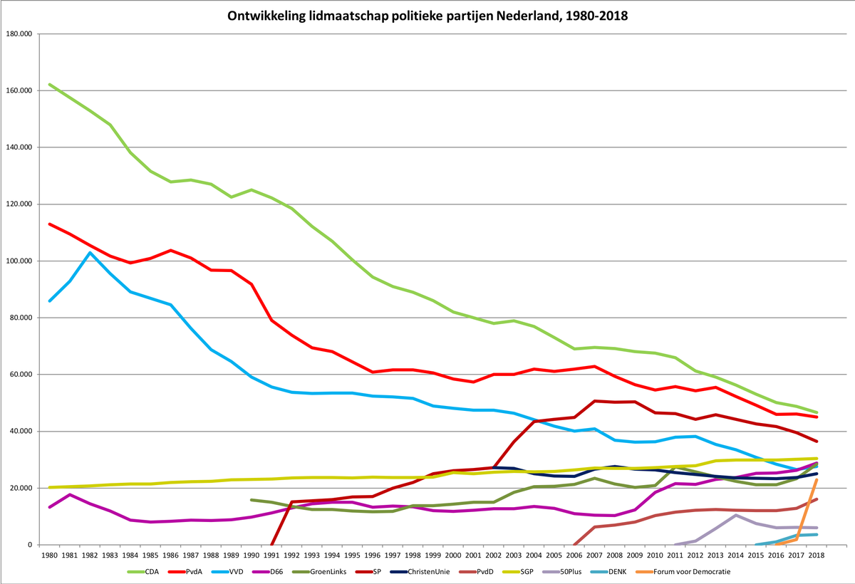 Update van de cijfers - Ontwikkeling lidmaatschap van politieke partijen, met nu ook de lidmaatschapscijfers van 2017-18 van @fvdemocratiepic.twitter.com/X5sM7qN2j3