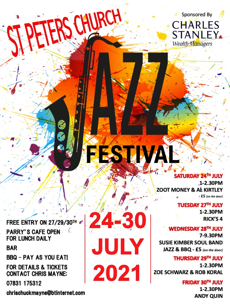 Free Lunchtime Jazz Concert at St Peter's from 1pm. Come early and grab a light lunch from Parry's Cafe before sitting back and enjoying music from JazzMopic.twitter.com/n5vXsMvOwQ