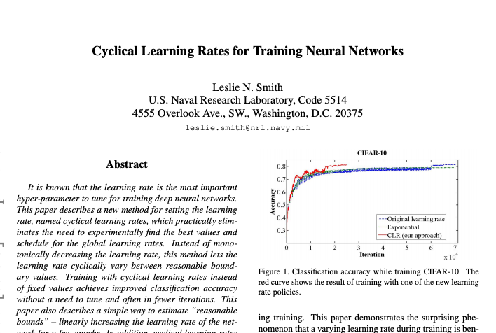 #deeplearning tip: don't just rely on a constant or decaying learning rate, often cyclical learning rates can improve performance. Read this paper for the why and how. http://ow.ly/8rEQ50xTWCg pic.twitter.com/QTkyIuwOwk