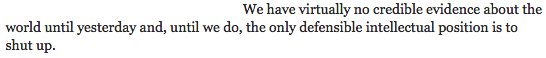 “the only defensible intellectual position is to shut up”—James C. Scott reviewing Jared Diamond in the