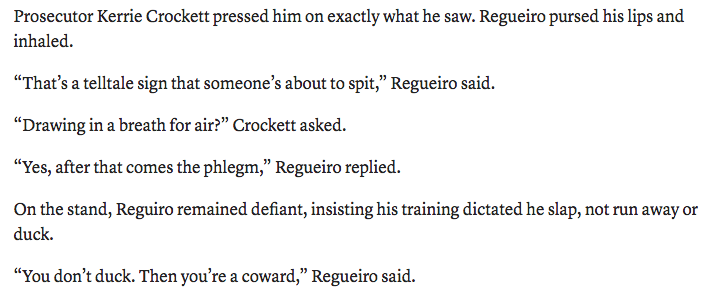 Prosecutor: Why did you slap this handcuffed man Cop: He was about to spit on me Prosecutor: Could you have, I don't know, not slapped him Cop: No, because that would make me a coward Jury: We find the defendant not guilty https://www.miamiherald.com/news/local/crime/article239722548.html …pic.twitter.com/lR6L5kidZB