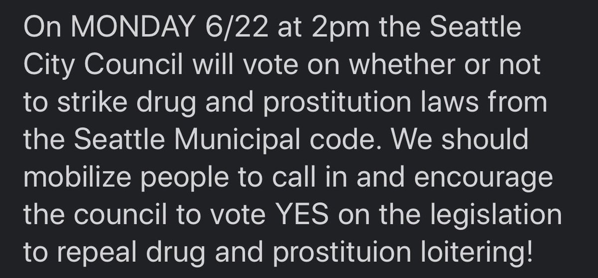 In Seattle today, the city council will vote on repealing drug and prostitution loitering. This would be a huge step forward for removing victimless crimes from the books and removing police overreach from our community. pic.twitter.com/LZleAfXuPu