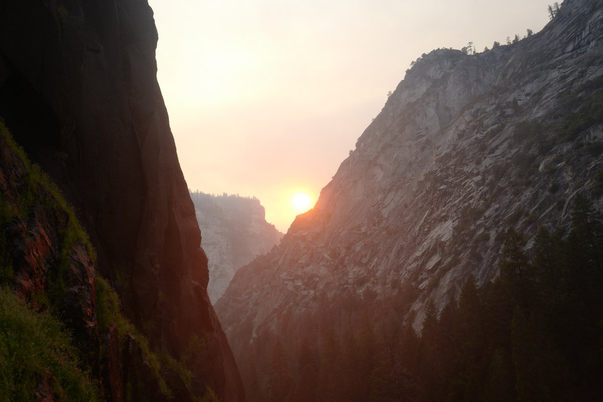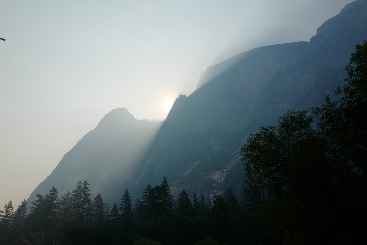 The sun setting over Yosemite Valley. (Seen through the smoke kicked up by yet another wildfire raging through California.)pic.twitter.com/hzVaF29bih
