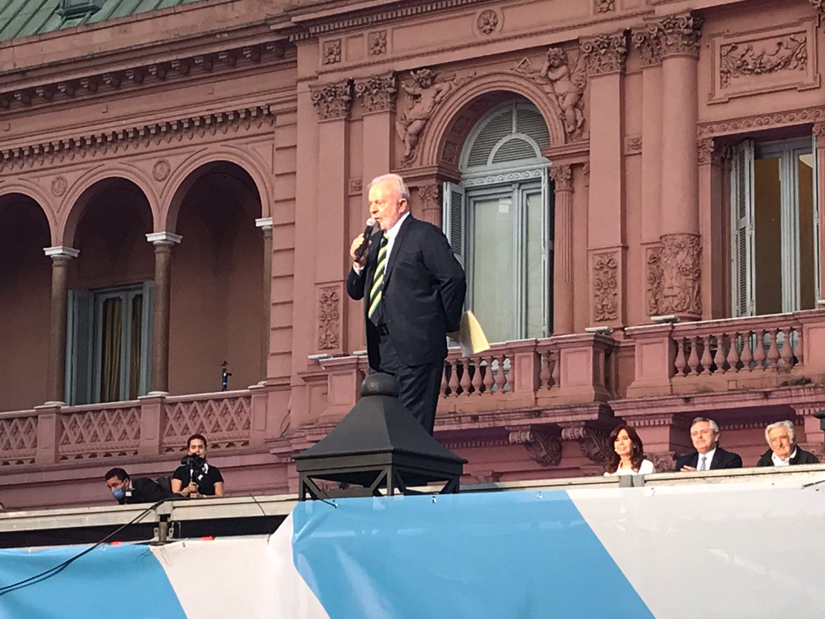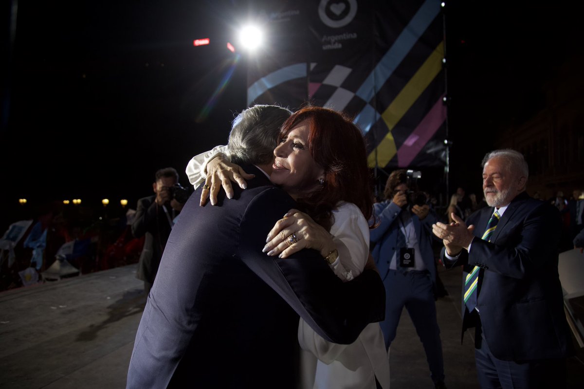 Em seu Twitter, o presidente argentino publicou: "Pela democracia que hoje temos, milhares de argentinos entregaram sua vida. (...) Quero agradecer por encher esta praça. Hoje com Cristina, Lula e Pepe estamos construindo a pátria grande que sonhamos".https://twitter.com/alferdez/status/1469479164499701760 …