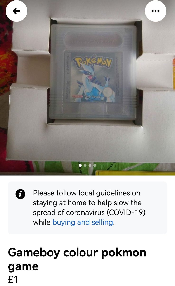 Got quite excited to see this complete Pokémon Silver game listed for £1 on marketplace yesterday. Sadly it was delisted soon after I enquired about it, so I guess it was a typo.pic.twitter.com/Uts89lvz41