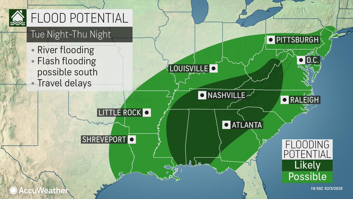 A series of storms will make their way across the country and result in an expanding flood threat across a wide swath of the eastern United States during the middle to the latter part of this week: https://bit.ly/31oU9JK pic.twitter.com/vKiOPenX8v