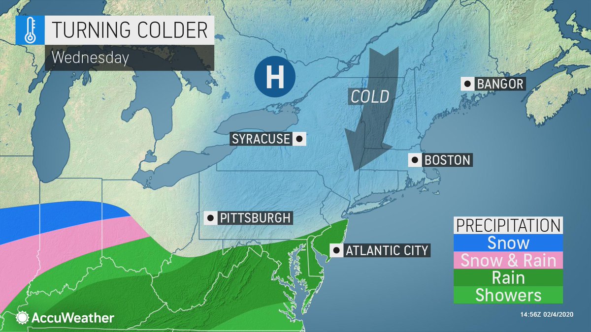 After record-challenging warmth in the Northeast and mid-Atlantic to start the week, conditions are expected to cool by midweek. By Wednesday morning, temperatures will dip into the teens in northern New England and lower 30s in central Pennsylvania: https://bit.ly/2GV8unU pic.twitter.com/axRwtzK4QR