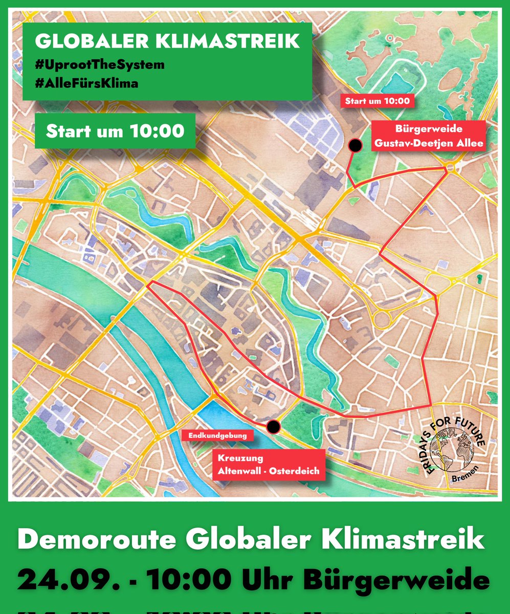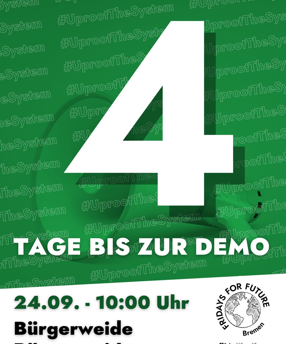 #hb2409 Demo ist offiziell! Noch drei Tage bis zum#Klimastreik!#FridaysForFuture#UprootTheSystem#AlleFuersKlimapic.twitter.com/JNNFqtjDyX