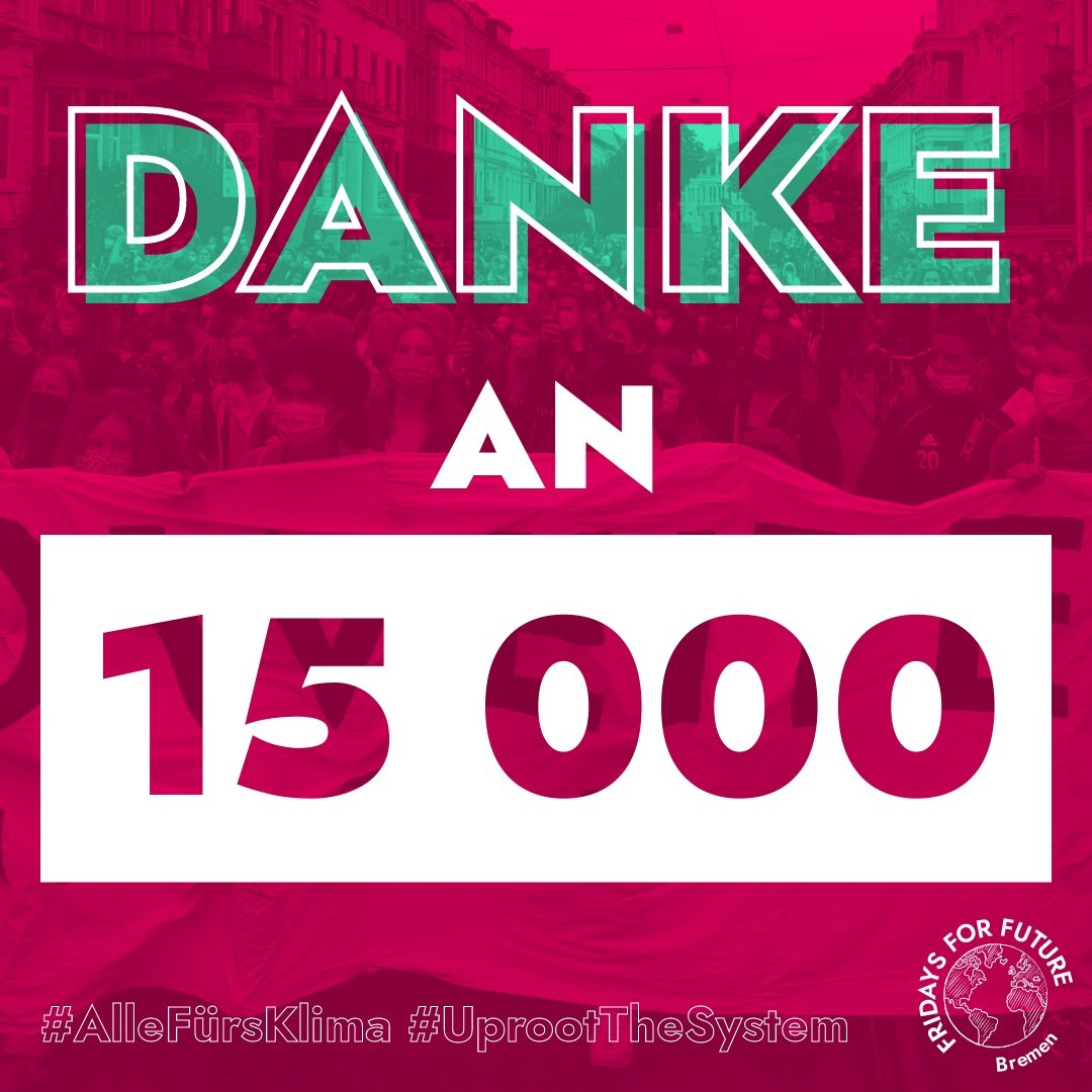 Wir sind nach wie vor mega happy, wie alles gestern geklappt hat, gerade trotz der nicht erwarteten hohen Zahl. Vielen Dank an unsere Bündnispartner:innen und Friends, die uns bei der Orga und Vorbereitung unterstützt haben. Wir halten euch auf dem Laufenden, was jetzt folgt.https://twitter.com/bremenforfuture/status/1441386050308427778 …