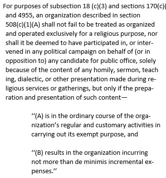 despite early reports, a full Johnson Amendment repeal was not in the tax bill: it only applies to churches, and only to the pulpitpic.twitter.com/1HTZxo8npJ