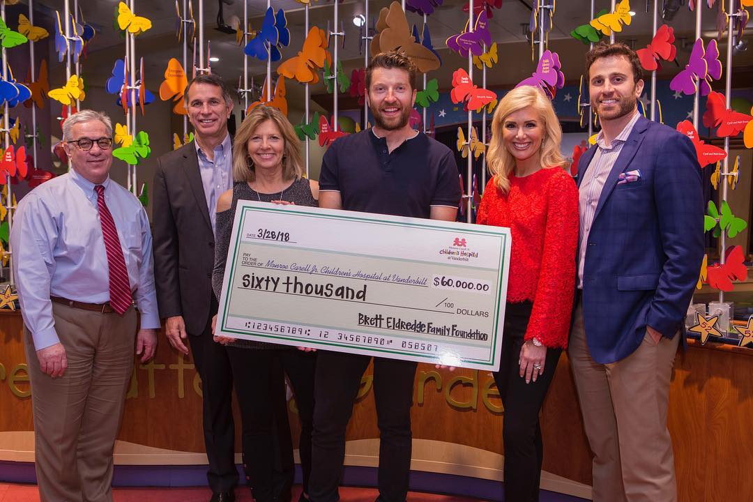 The passion and love the folks at Vanderbilt Children’s hospital have for their kiddos is UNREAL! So proud to give them this check from The Brett Eldredge Family Foundation...keep going, we’re here for you!pic.twitter.com/1QAlyLbpDS