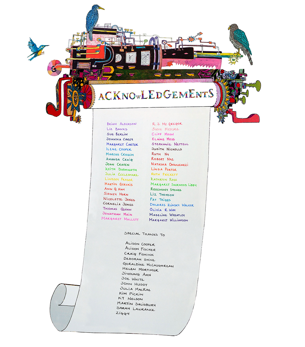 Here's the Acknowledgements page Printing Machine construction story (image 1). It's a blend of part of image 2 from Professor Noah's Spaceship and part of image 3 from The Tunnel. You should spot rapidly...