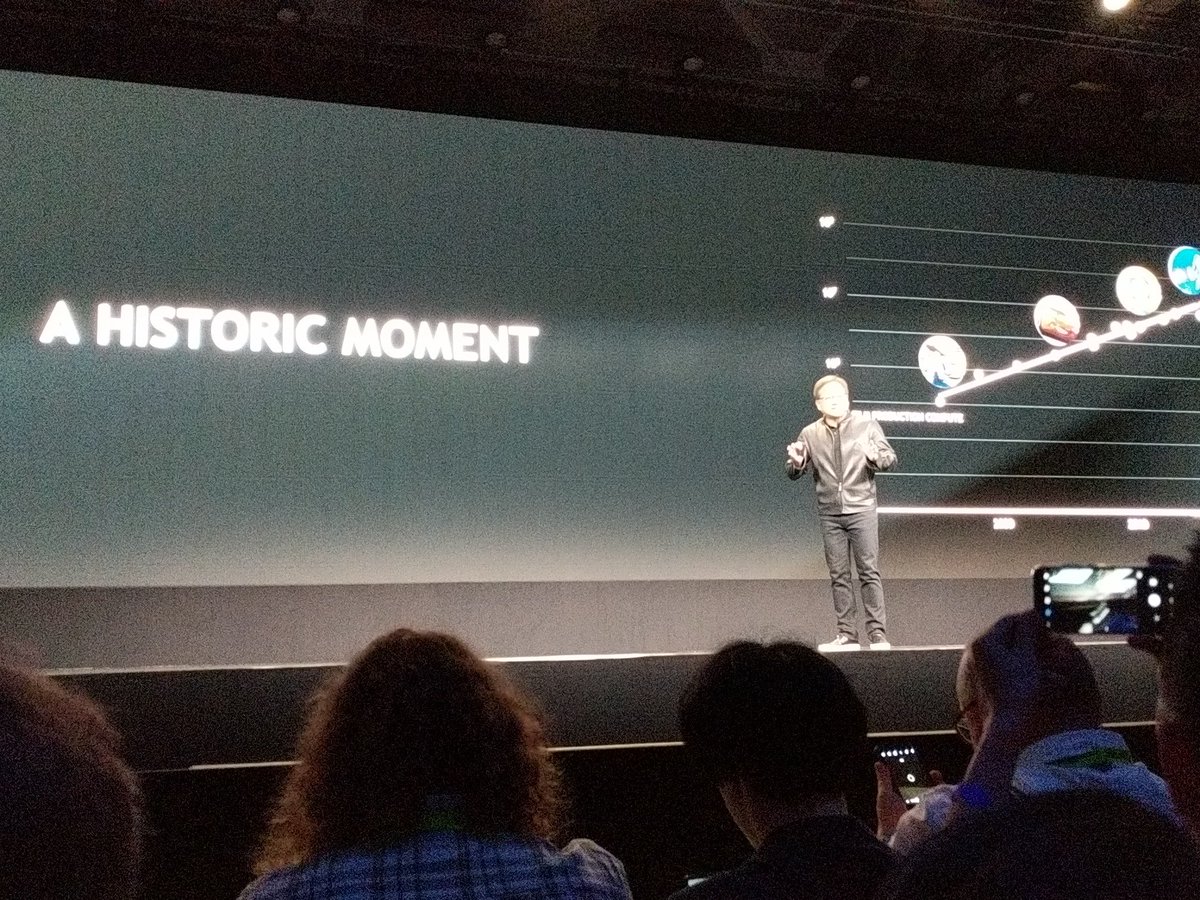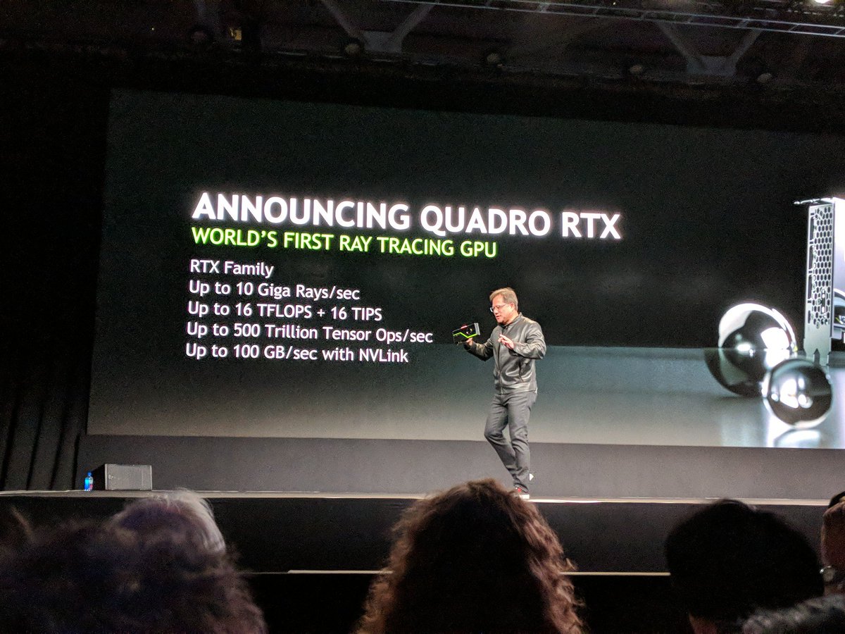 Jensen starts off by saying today is a historic moment in graphics. Thinking real-time ray tracing, next step to what was announced at GTC.