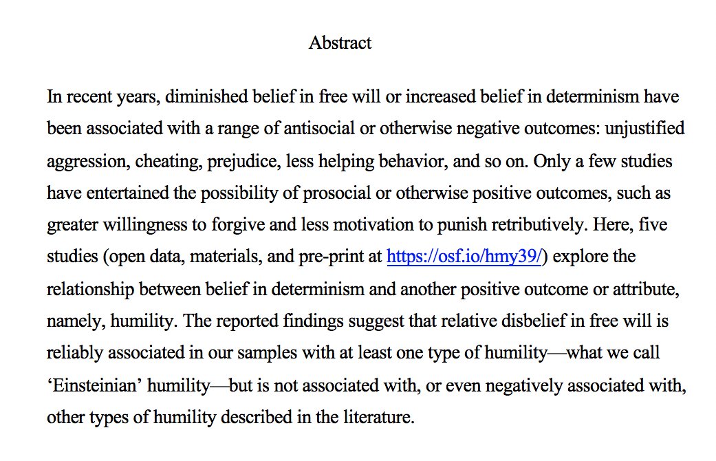 Revised pre-print! "Determined to Be Humble? Exploring the Relationship Between Belief in Free Will and Humility" https://buff.ly/2IuKtnB pic.twitter.com/iTWb6RYbHU