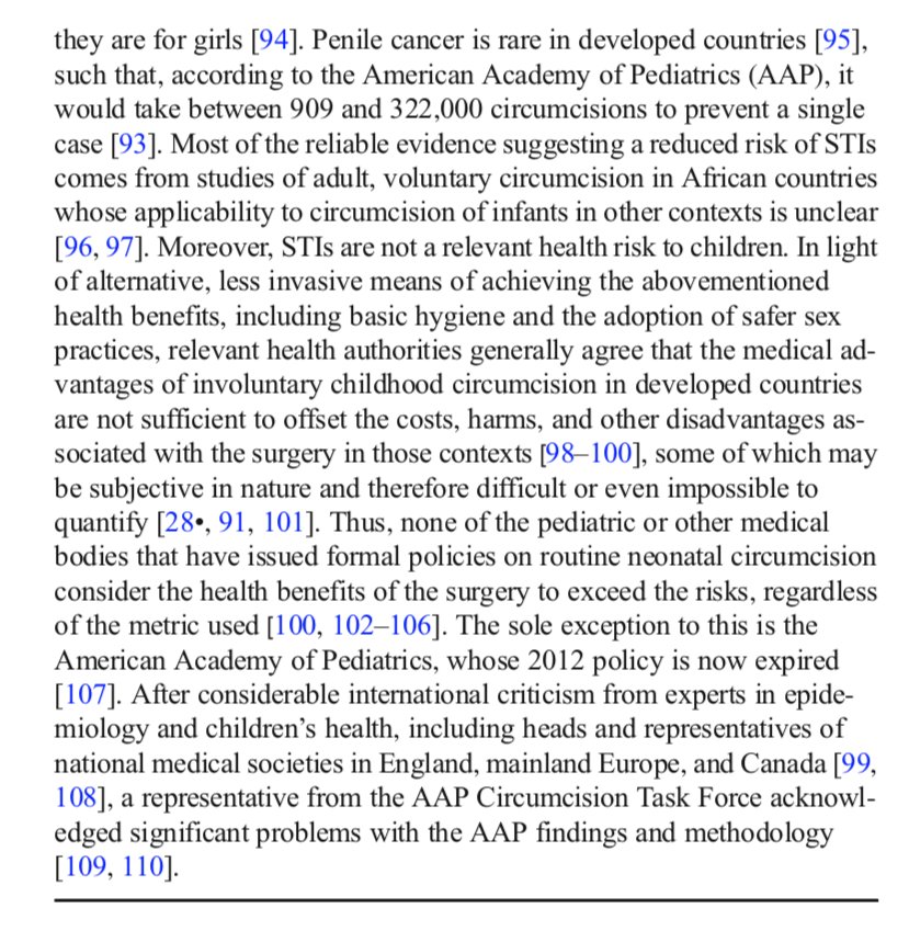 It would take between 909 - 322,000 circumcisions to prevent one case of penile cancer. STI data are from adult, not infant circumcision. https://www.researchgate.net/publication/322807486_Genital_autonomy_and_sexual_well-being … Re: cervical cancer see ethical arguments here https://academic.oup.com/phe/advance-article-abstract/doi/10.1093/phe/phx024/4764011 …pic.twitter.com/6GFXguVJ26