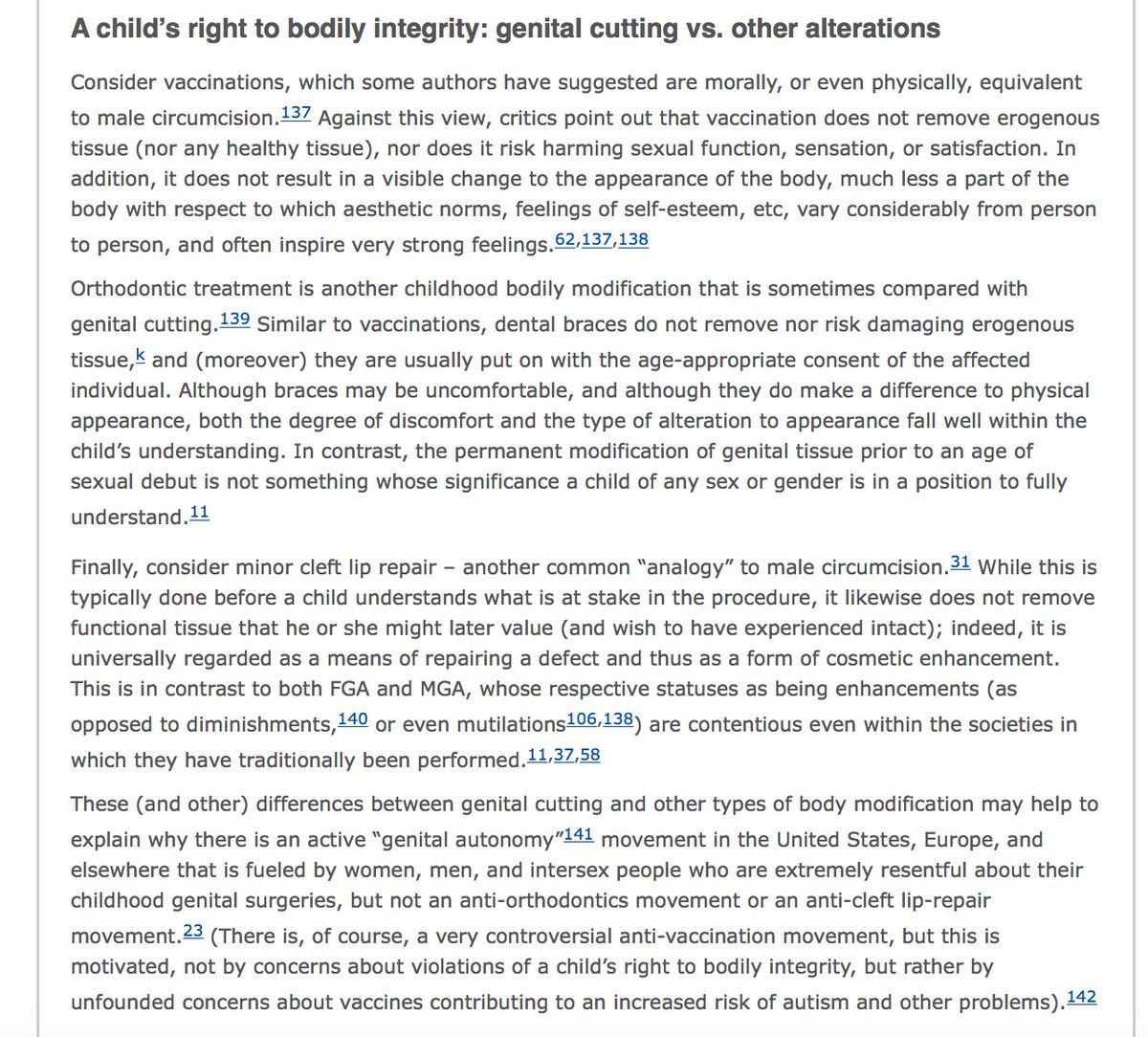 Vaccinations do not remove erogenous tissue or visibly change a psychosexuall significant external organ, on the most private part of a child's body. The analogy is not apt. https://www.dovepress.com/female-genital-mutilation-and-male-circumcision-toward-an-autonomy-bas-peer-reviewed-article-MB …pic.twitter.com/qAtV7ZPO32
