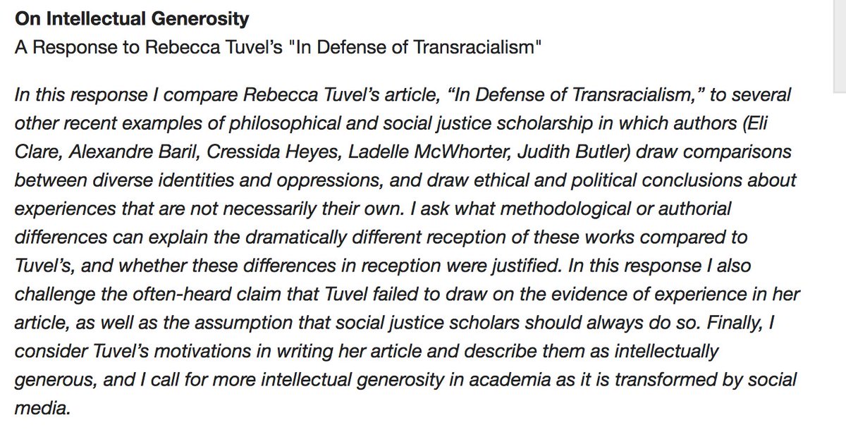 On Intellectual Generosity: A Response to the Treatment of Rebecca Tuvel https://buff.ly/2JWoEh9 pic.twitter.com/eKRVB0RMJf