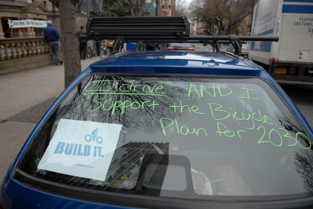 #Portland City Hall to support the@PBOTinfo Bike Plan for 2030 and demand more cycling infrastructure. "Build it!" was the rally cry from event organizer@thestreettrust (then the BTA).pic.twitter.com/XOJGz0lGld