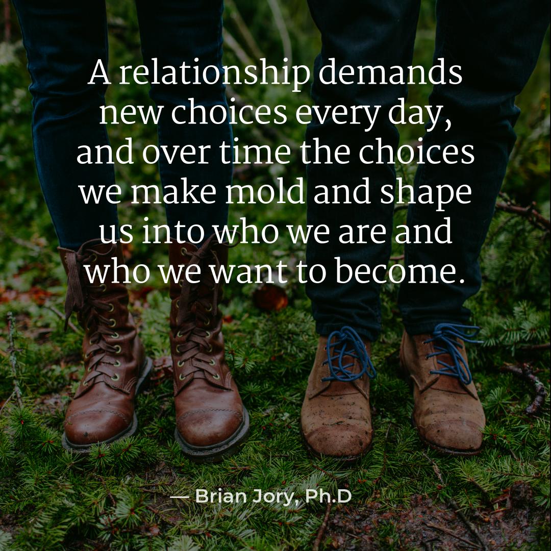 A relationship demands new choices every day, and over time the choices we make mold and shape us into who we are and who we want to become.