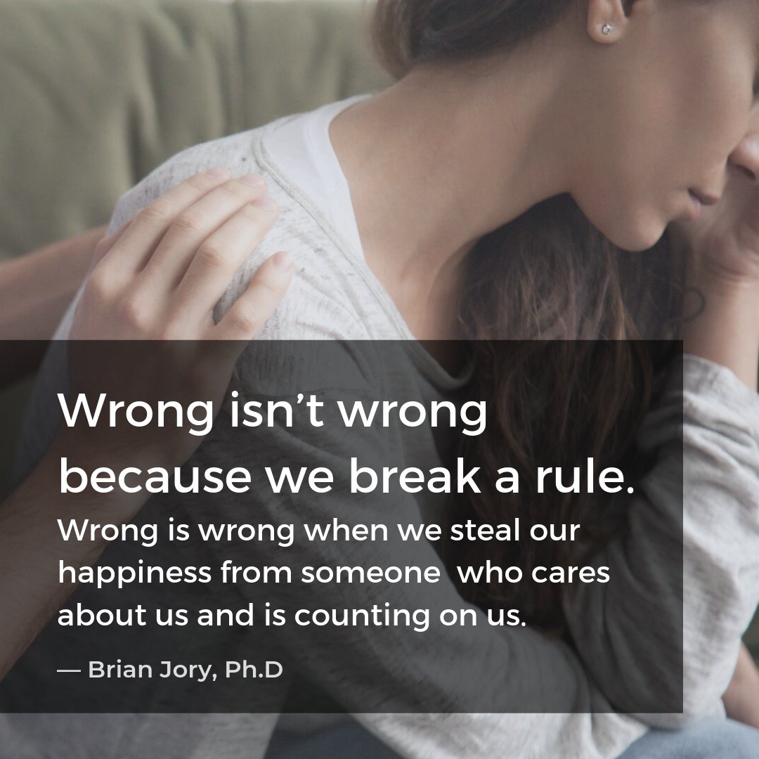 Wrong isn’t wrong because we break a rule. Wrong is wrong when we steal our happiness from someone who cares about us and is counting on us.