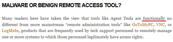 It's not a RAT. That more and more companies starts naming things as which makes their research "sounds better", it not means their naming is correct... Also, AT (a stealer/logger) is functionally different from RATs (which can be used to remotely access/control a computer)...pic.twitter.com/0ieDsotWW0