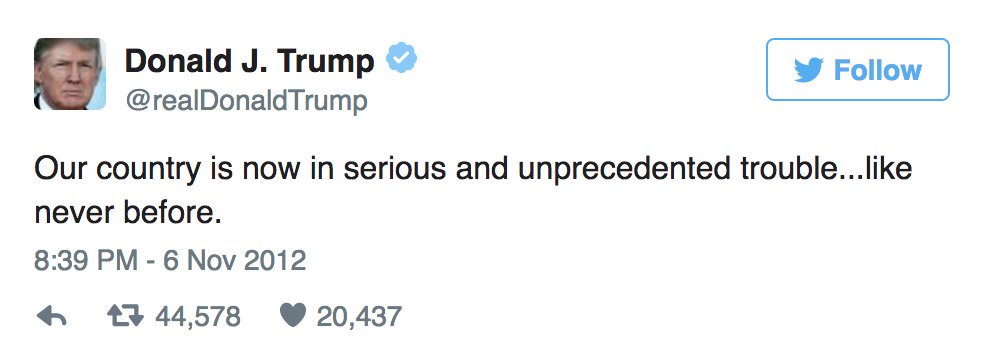 President-elect Trump's 2012 election night tweetstorm resurfaces as popular and electoral vote appear divided. http://abcn.ws/2g0kiKr pic.twitter.com/fOy6dr5XrP