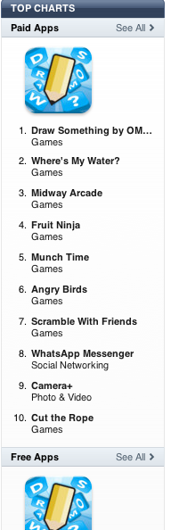 Congrats to @OMGPOP @tfadp & @charlesforman: New iPhone app DrawSomething reaches #1 on both Free and Paid!pic.twitter.com/kPWuhB3S