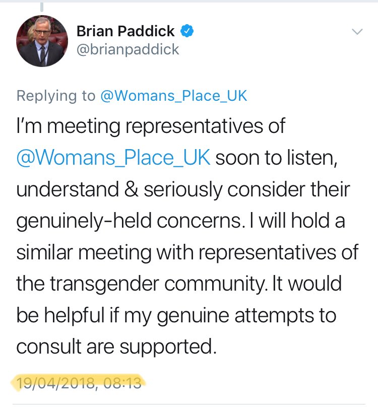 @brianpaddick is meeting with Woman's Place and other representatives. Hopefully others will now follow his lead is listening to both sides and coming together to find a workable solution.