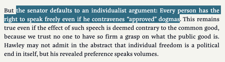 Meyer insisted that the individual’s innate dignity is conservatism’s “first principle” and that it demands vigorous limitations on state power in politics and economics.https://lawliberty.org/fracture-or-fusion/ …