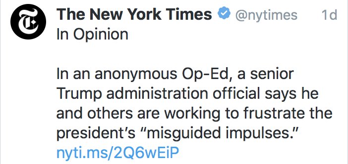 .@maggieNYT @peterbakernyt Hiya. A question: Yesterday @nytimes tweeted that the writer of the anonymous op-ed was a he