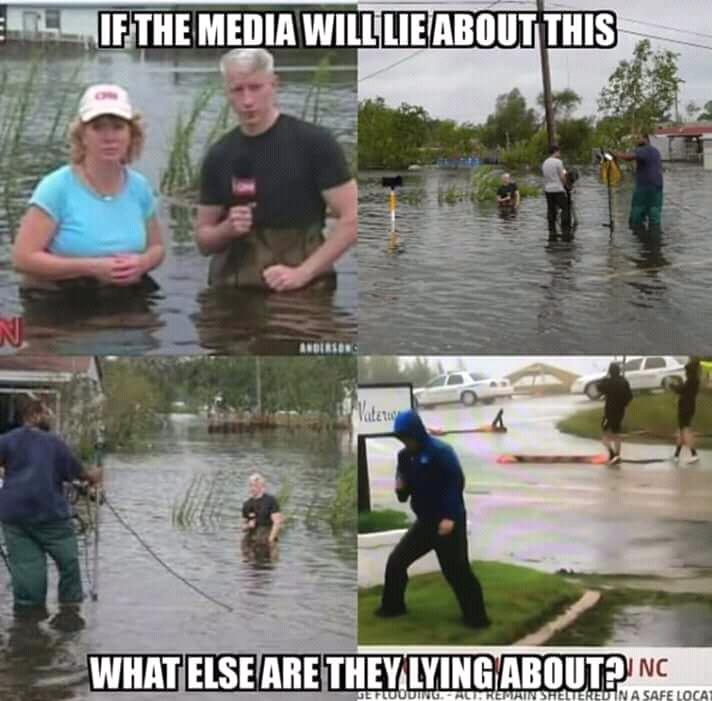 The pic is from hurricane Ike, where Anderson walked around in chest waders to demonstrate that the depth of flood waters was high in parts, low in others. That's why people wear waders. For those of you who can and do read, the truth. For the rest....https://www.snopes.com/fact-check/anderson-cooper-hurricane/ …