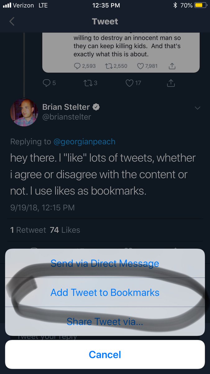 Same!! I use the "Like" feature as a bookmark as well. Twitter should really add a proper bookmark feature. :)