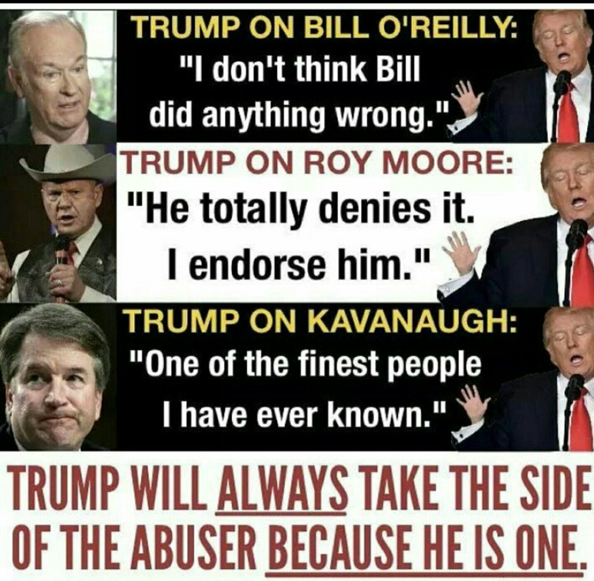 What about Bill Clinton? Did you take HIS side when EVIDENCE proved his guilt?