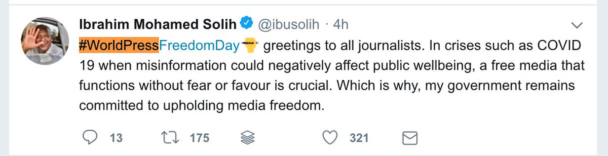 Here are Press Freedom Day messages from a few other heads of state: leaders from Greece, Namibia, Lithuania, and the Maldives.pic.twitter.com/LcyCS56tzx