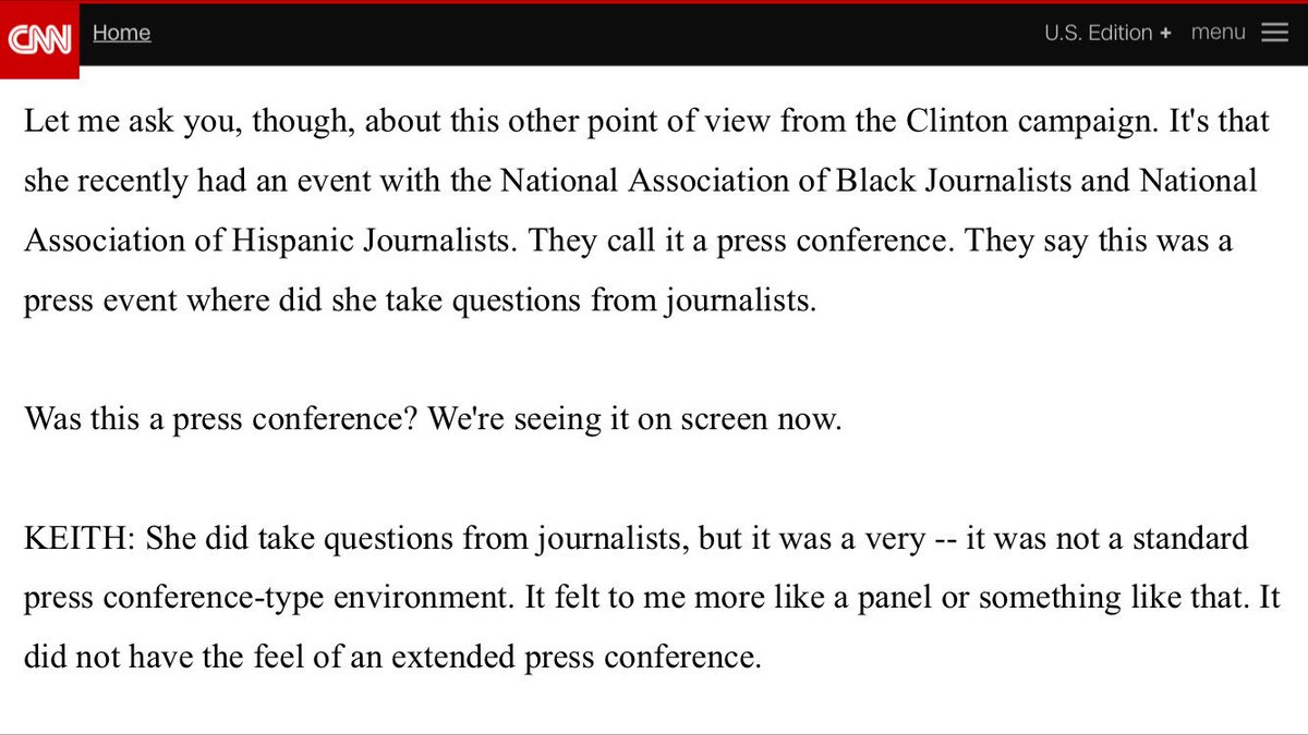 Yeah I think journos are treading on dangerous ground dismissing Clinton's Presser at NABJ. Looks really bad.