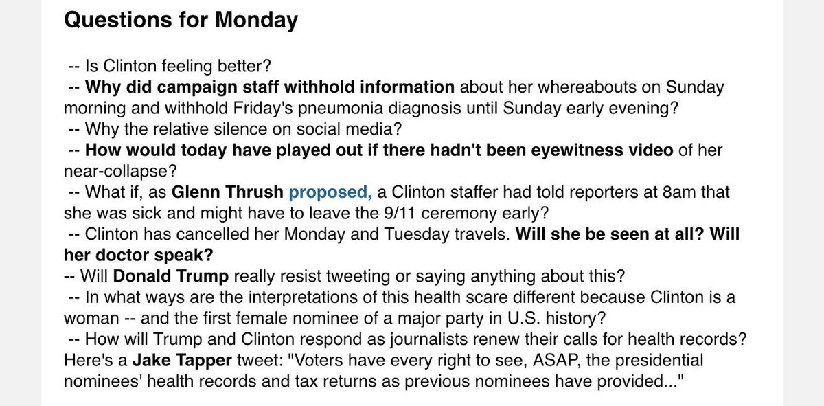 #HillaryHealth + media Q's for Monday: http://eepurl.com/cfhGg1  pic.twitter.com/o7aJ5o3kqg