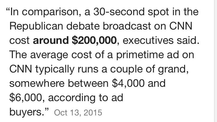 I found it, $2000. Let's say he was on there for a total 20 hrs. That's 24,000 ads. $48 Million in free ads.