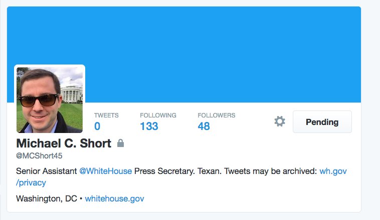 The new White House press secy on Homeland Security @MCShort45 has a protected Twitter account!?pic.twitter.com/yhUsqNbCCP